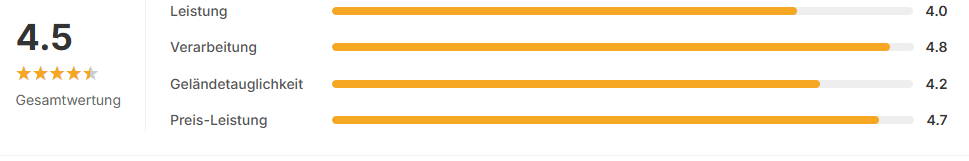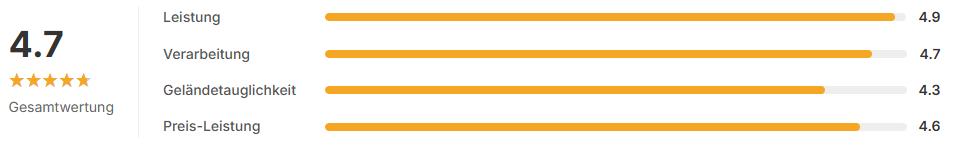 In Sachen Höchstgeschwindigkeit liegt der Arrma Senton 223S mit bis zu 85 km/h an der Spitze unseres Vergleichs, dicht gefolgt vom Arrma Big Rock mit 80 km/h. Die beiden Traxxas-Modelle liegen mit 65-70 km/h im Mittelfeld, während der Tamiya Super Avante in der Standardkonfiguration mit etwa 40 km/h das Schlusslicht bildet – allerdings mit erheblichem Tuning-Potenzial.