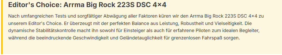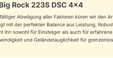 Bester Allrounder: Arrma Big Rock 223S – überzeugt mit perfekter Balance aus Leistung, Robustheit und Geländetauglichkeit.