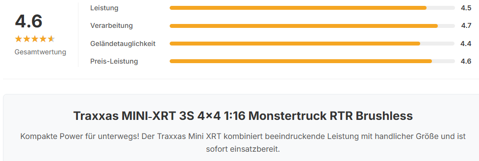 Bester für Einsteiger: Traxxas Mini XRT – kompakt, leicht zu beherrschen und dennoch leistungsstark.