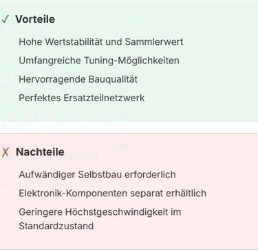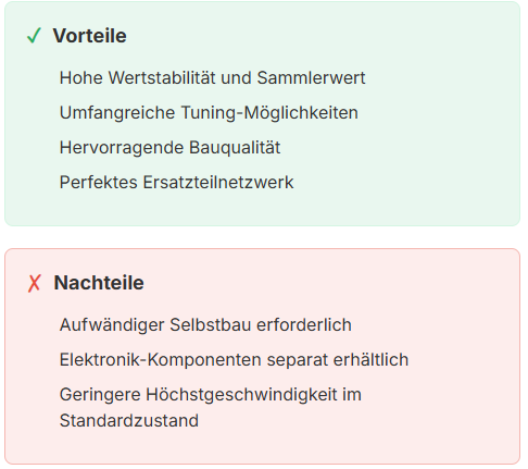 Der Tamiya Super Avante TD4 ist die perfekte Wahl für RC-Enthusiasten, die Wert auf Tradition, Qualität und ein tieferes Verständnis der Technik legen. Der Selbstbau mag zunächst abschreckend wirken, bietet jedoch ein unvergleichliches Erlebnis und eine besondere Bindung zum eigenen RC-Car. Besonders für Sammler und Liebhaber klassischer RC-Modelle ist der Super Avante ein Muss, da er nicht nur Fahrspaß bietet, sondern auch eine Wertanlage darstellt.