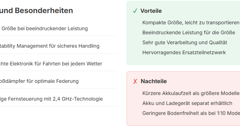 Egal ob Sie Einsteiger sind oder bereits Erfahrung mit RC-Fahrzeugen haben – dieser Vergleich hilft Ihnen, das perfekte Modell für Ihre Bedürfnisse zu finden. Wir haben alle Modelle auf Herz und Nieren geprüft und bewerten Geschwindigkeit, Geländetauglichkeit, Verarbeitung und Preis-Leistungs-Verhältnis. Tauchen Sie mit uns ein in die faszinierende Welt der ferngesteuerten Boliden!
