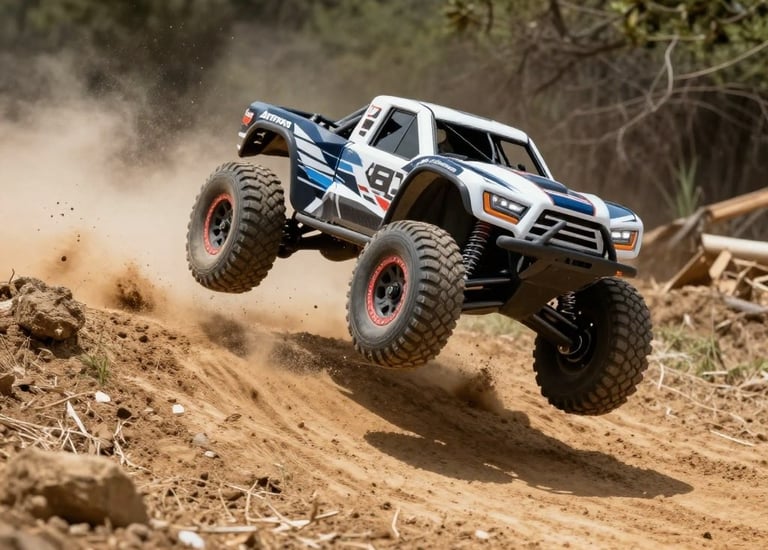ist ein beeindruckender Monster Truck im Maßstab 1:10, der für nahezu jedes Terrain konzipiert wurde. Mit seinem kraftvollen Brushless-Motor und dem robusten Allradantrieb meistert er mühelos Schotter, Matsch, Gras und sogar kleinere Wasserdurchfahrten. Was diesen Truck besonders auszeichnet, ist die perfekte Balance aus Geschwindigkeit, Robustheit und Kontrollierbarkeit.