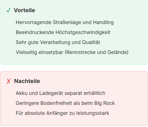 Mit einem Preis von rund 1.200 € richtet sich dieses Modell klar an erfahrene RC-Enthusiasten, die maximale Leistung und Größe suchen.